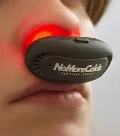 Devices like NoMore® designed for nasal use typically deliver low-level red light (around 630–660 nm) through small nasal probes.